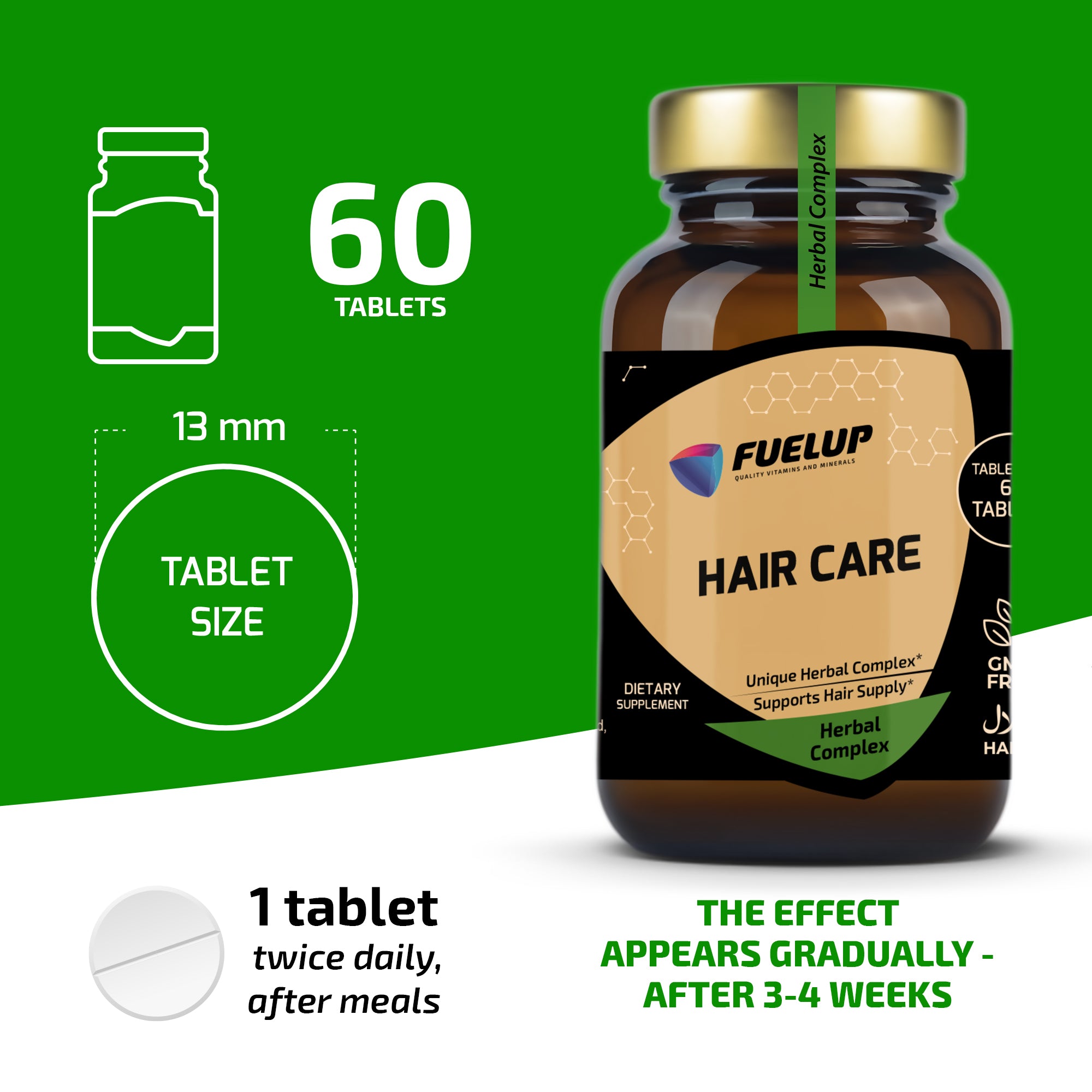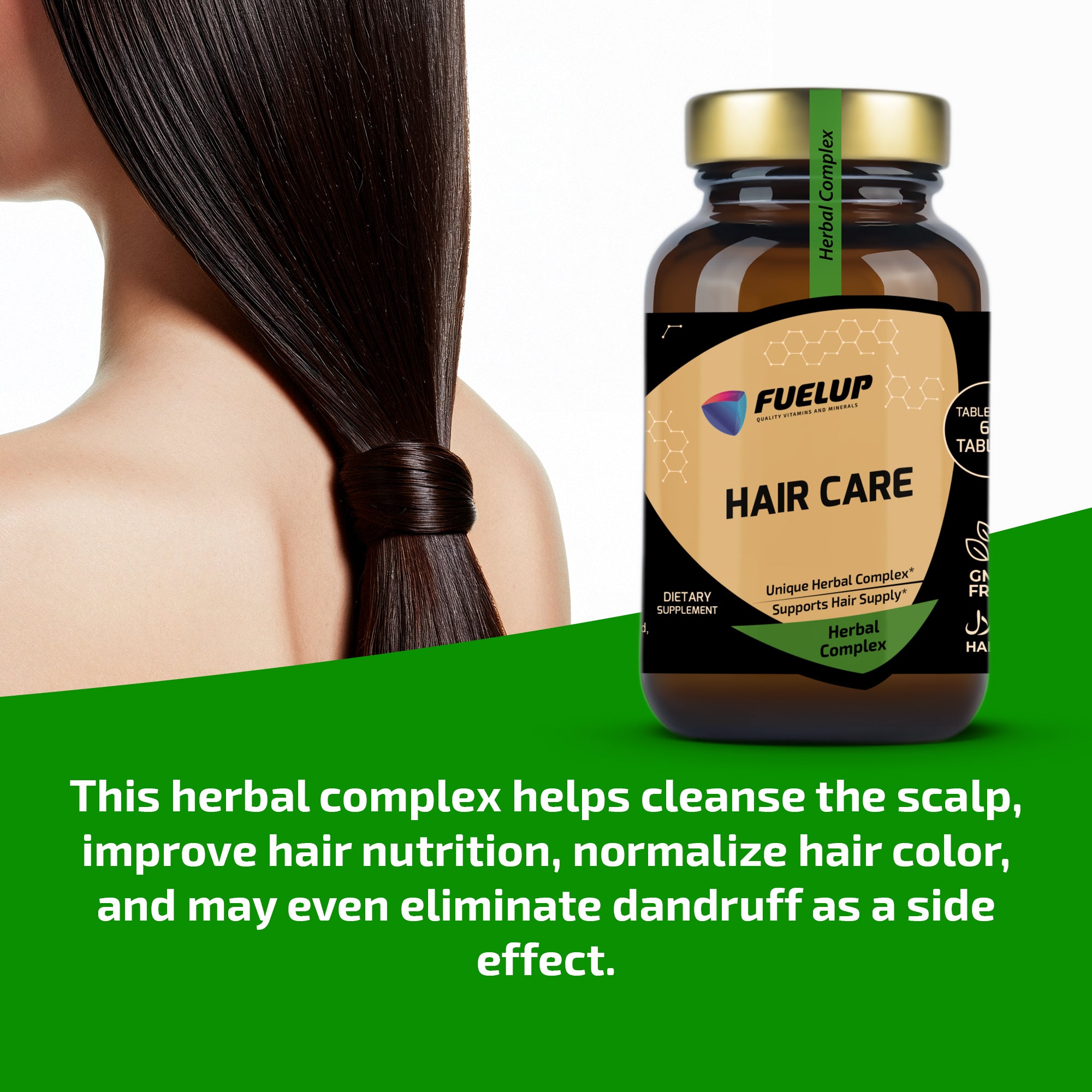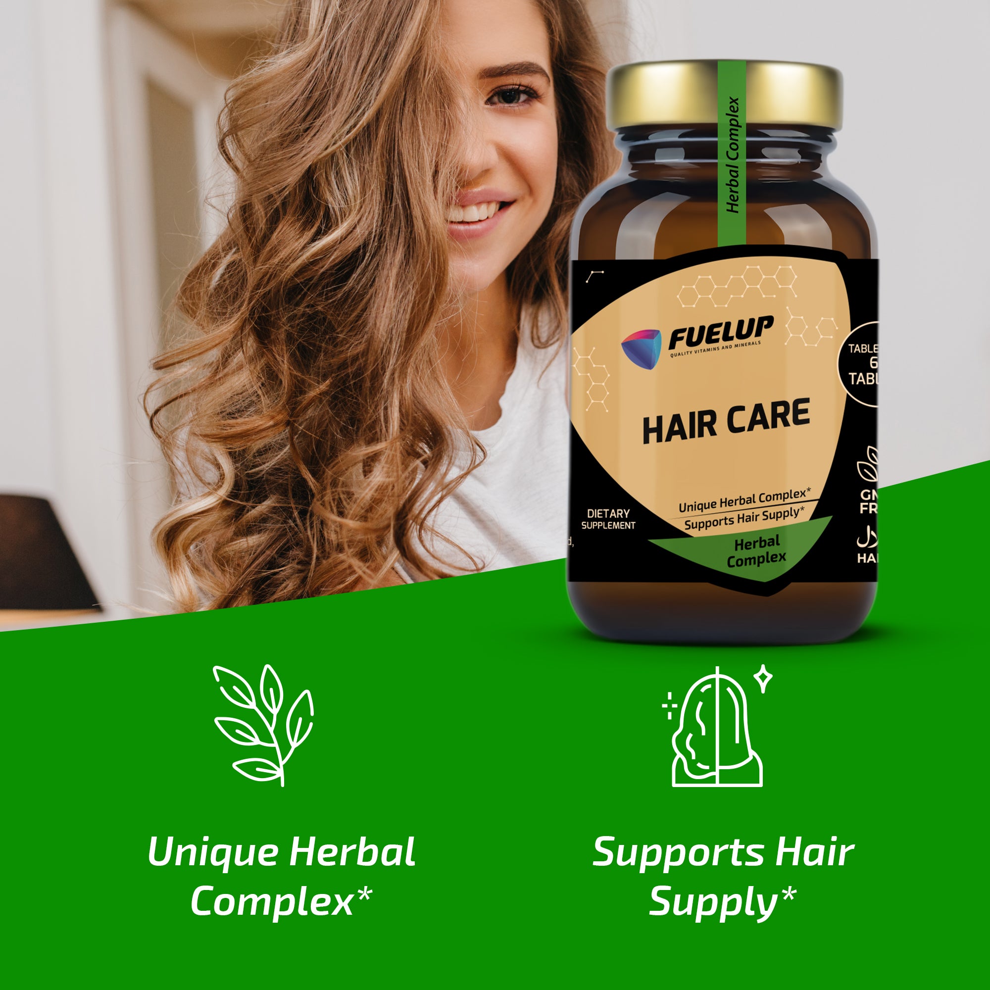 FuelUp Hair Care er et avanceret kosttilskud baseret på traditionel indisk ayurvedisk medicin. Kombinationen af nøje udvalgte urter og antioxidanter understøtter hovedbundens sundhed, hårvækst og hårets naturlige farve. De bioaktive ingredienser bidrager desuden til at reducere skæl og fremme en sund og balanceret hovedbund.